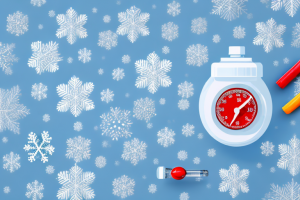 A winter scene with various cold-weather elements such as snowflakes